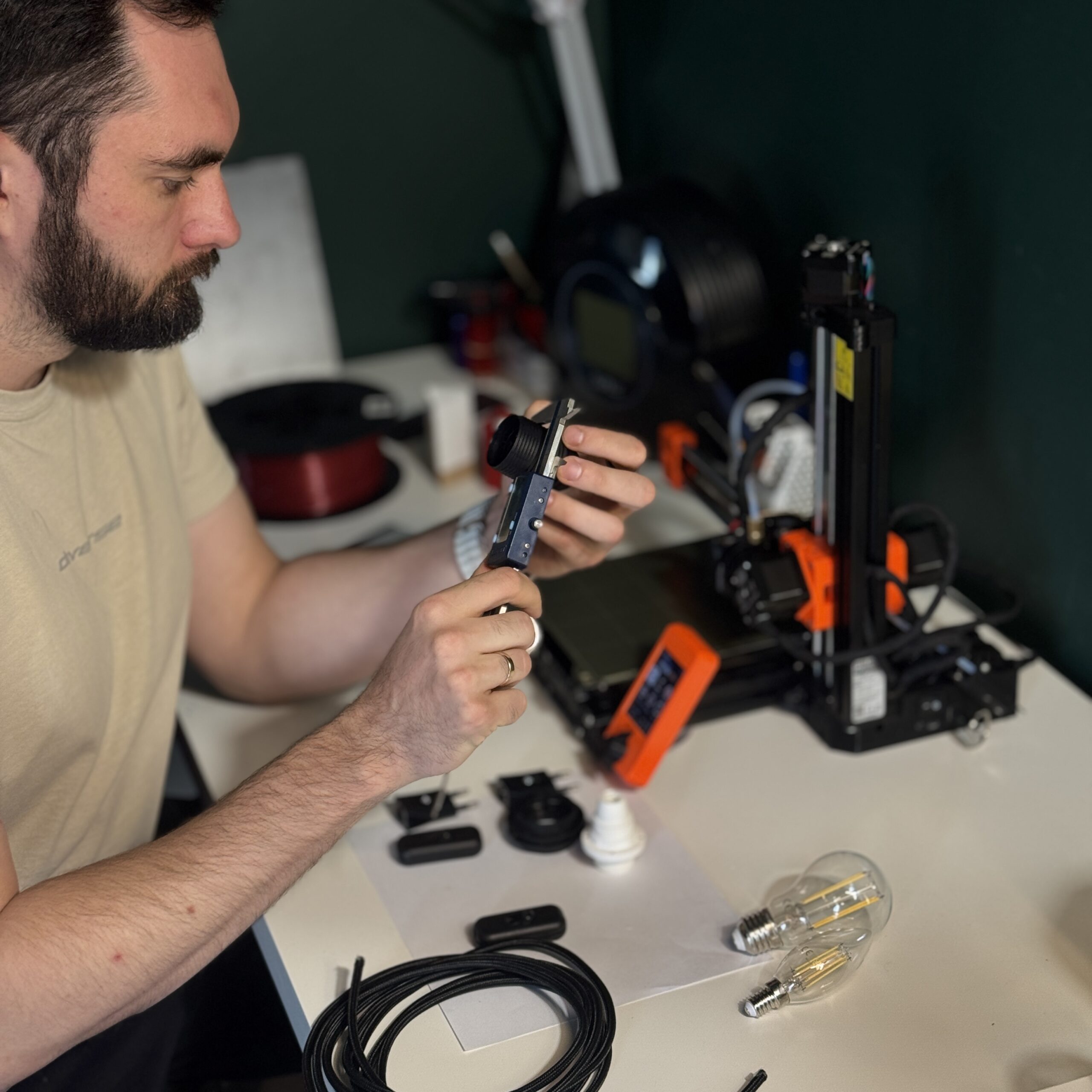 Dozens of prototypes. Every lamp — 3D-printed, hand-finished, assembled in our workshop in Poland. No production line. No shortcuts.