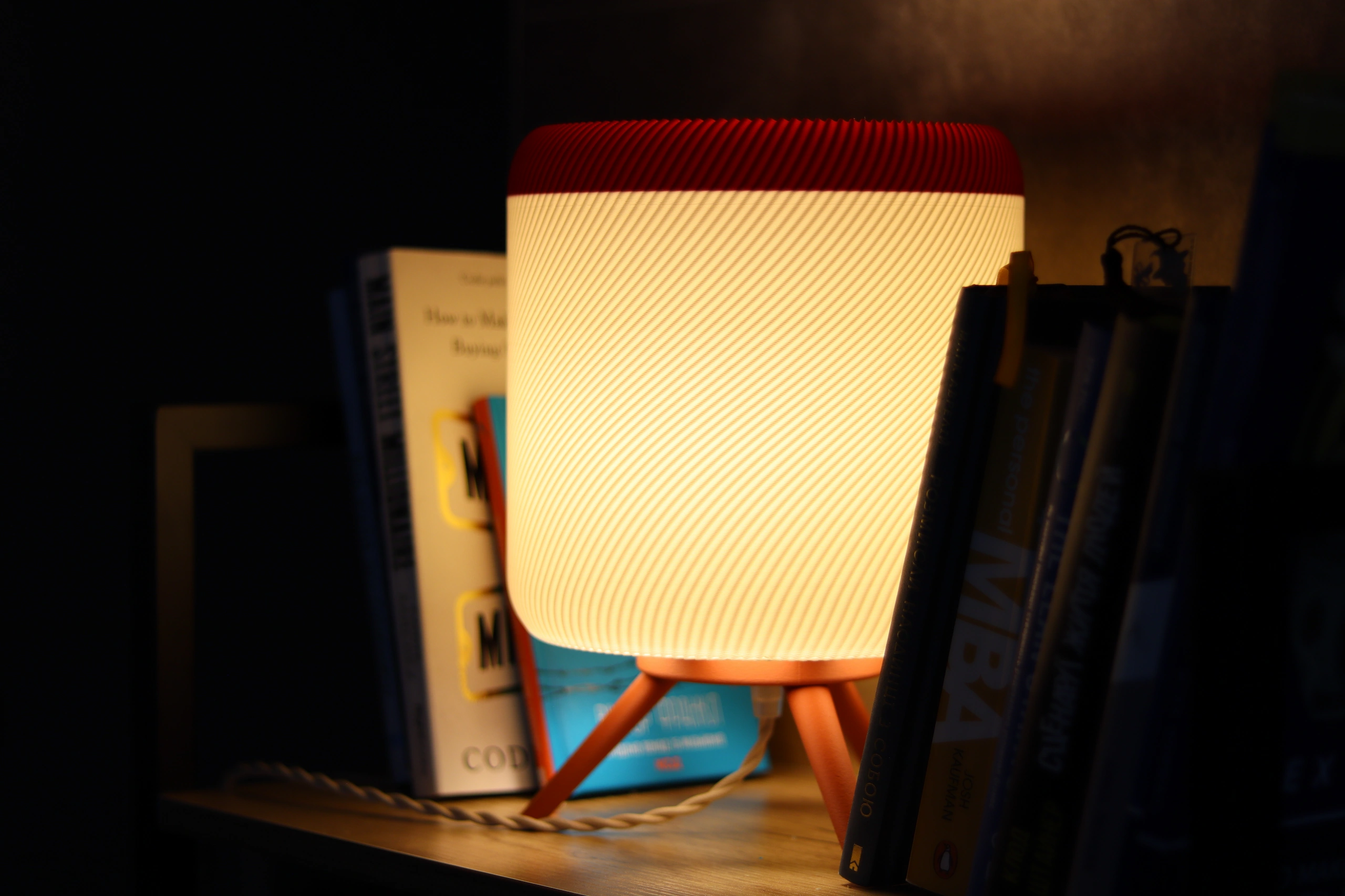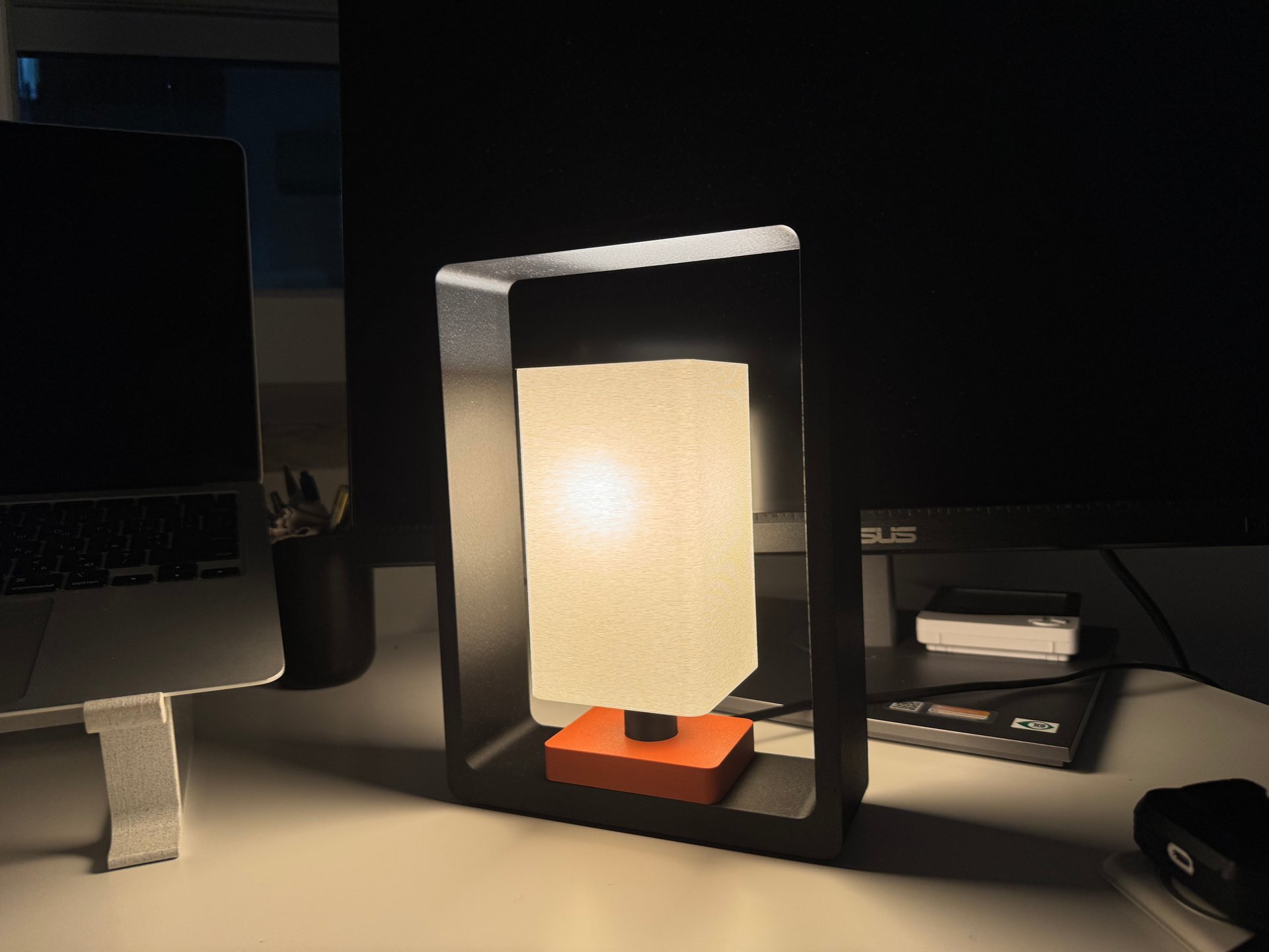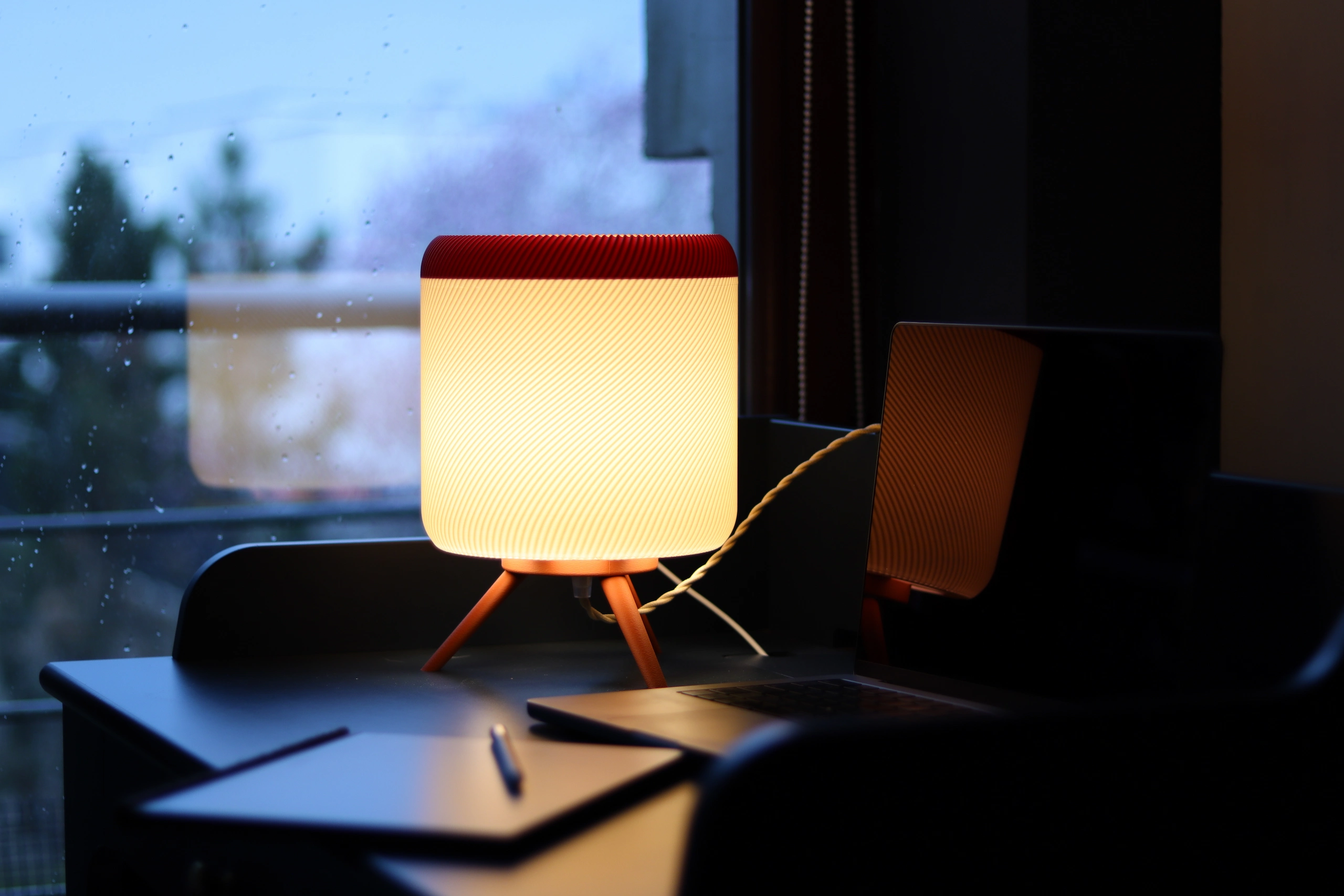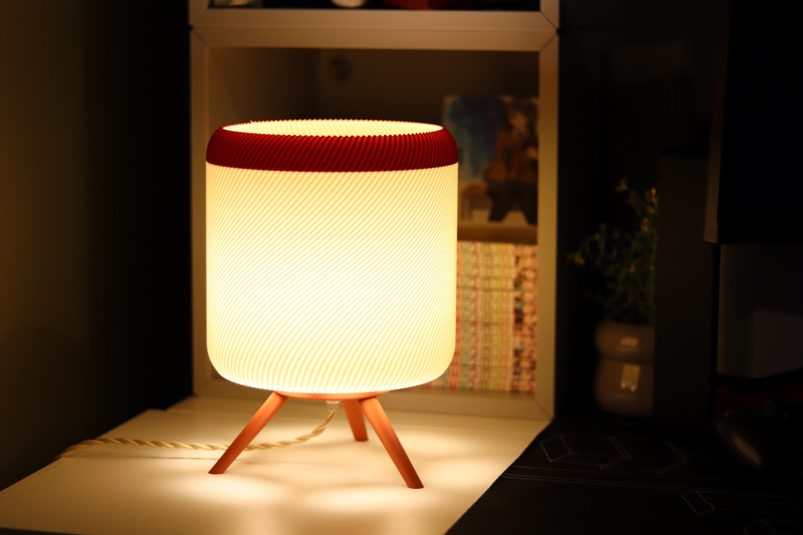I work from home, and my workspace is basically an improvised office corner. Especially now, in the autumn months, when it gets dark early and natural light is no longer enough, I needed a lamp to make the atmosphere warmer and more comfortable. This lamp fits perfectly into the space. I often work in a semi-dim environment, and the warm tone of the light really “softens” the room. It creates a cozy, calm atmosphere that helps me focus and actually makes the space feel warmer. What surprised me the most is the texture of the lampshade. Since it’s 3D-printed, I didn’t expect it to look and feel this refined. The white shade is not fabric, but the material diffuses the light in a way that feels very close to fabric — warm, soft, and pleasant. I didn’t expect this level of texture and light diffusion from a 3D-printed product. Overall, the lamp blends in beautifully and makes the whole room feel more inviting, especially during the autumn and winter season.